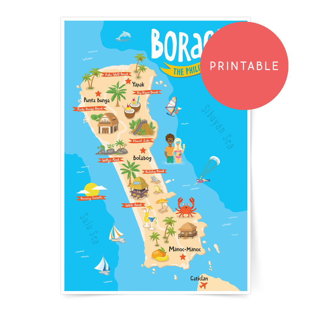 Boracay Illustrated Map Printable Wall Art Poster – Pinspired Art
