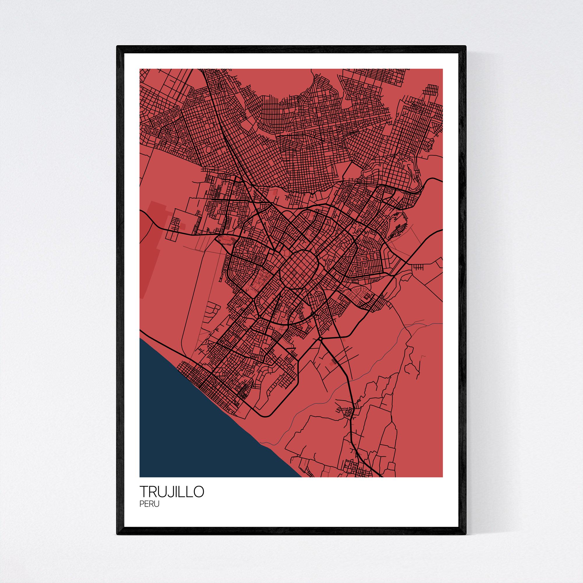 Trujillo Peru Map Print, Map Art Poster, Truhillu La Libertad